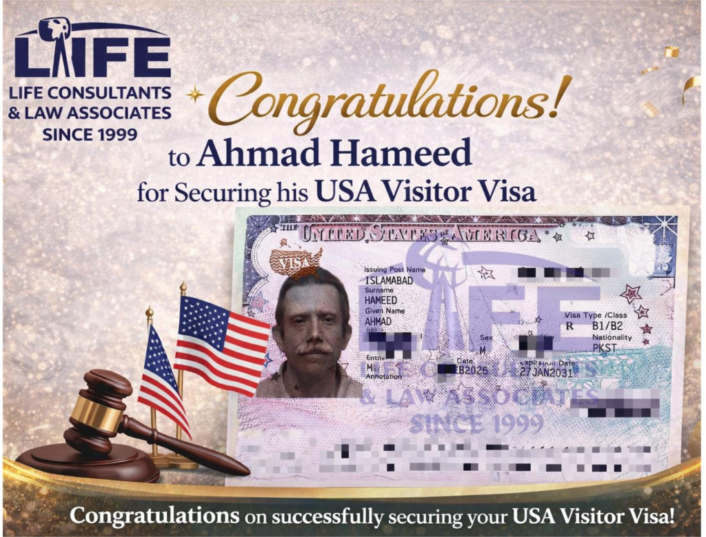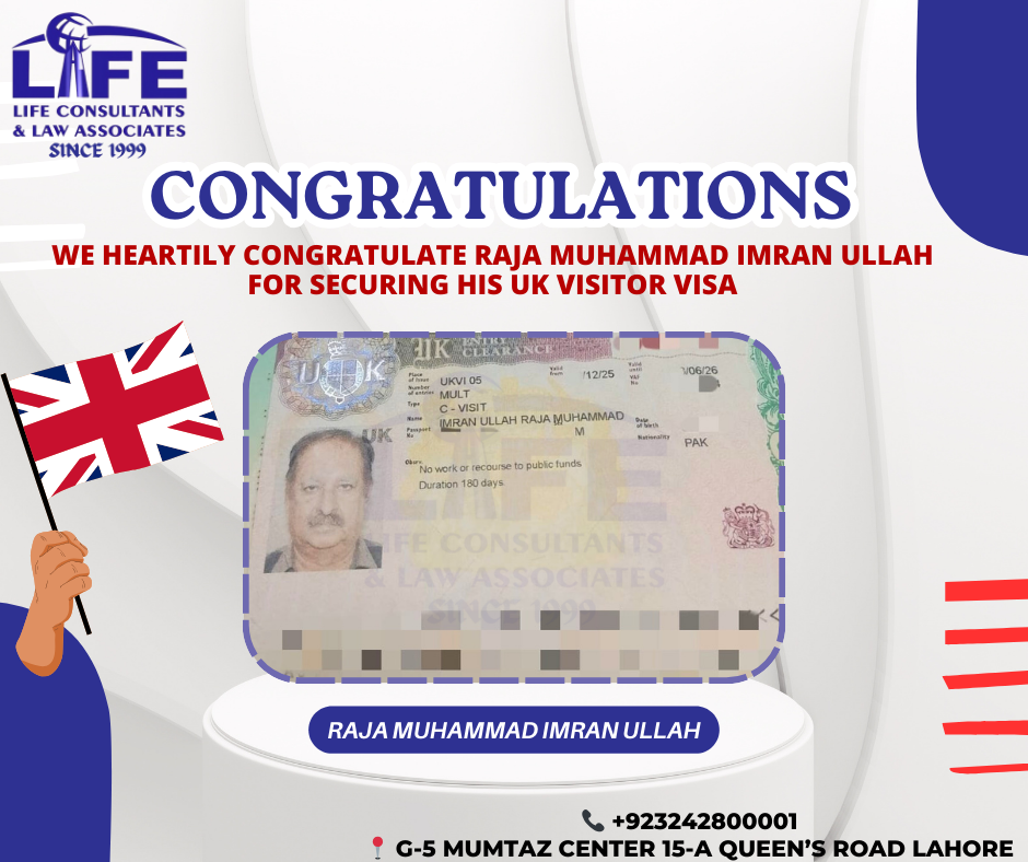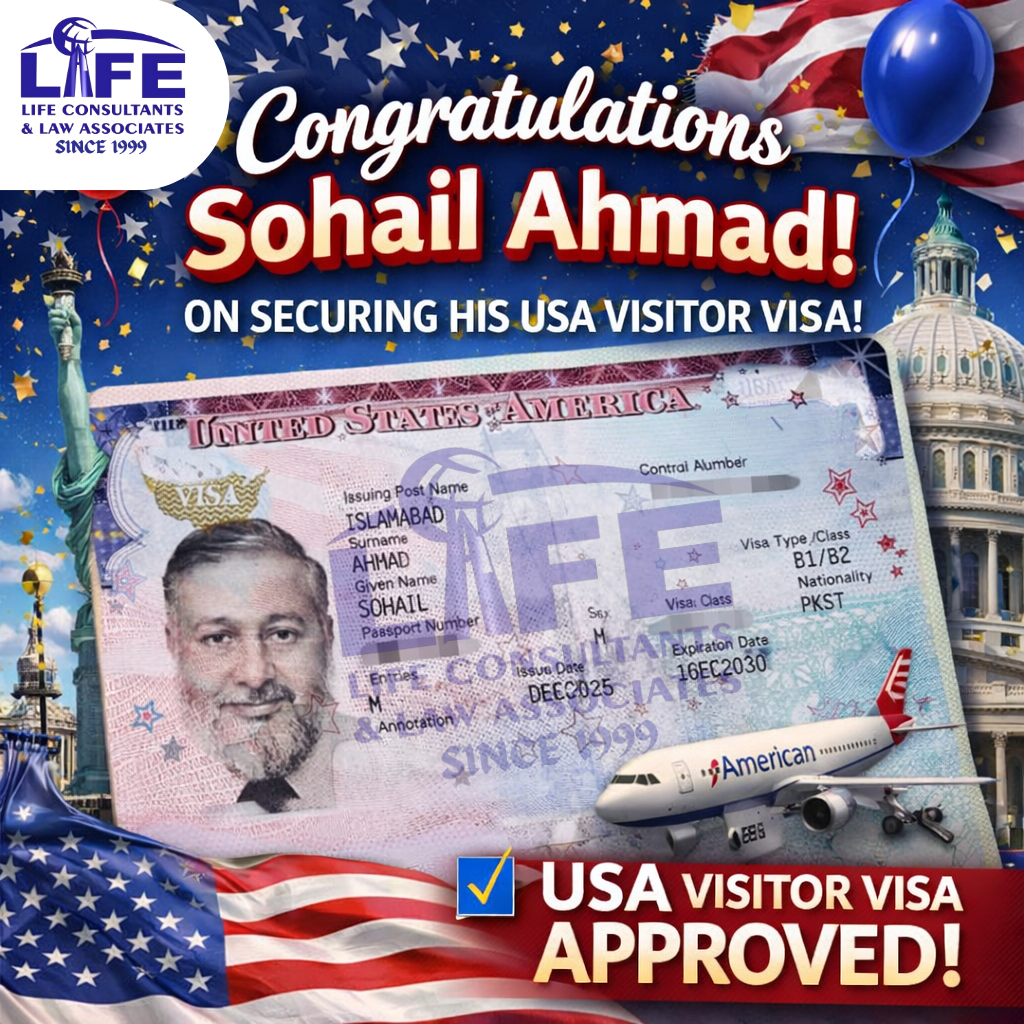 Life Consultant helps me a lot throughout my Visa processing journey with absolute professionalism and zeal. Today, I receive my Passport with my Visa sticker, all thanks to Life Consultants specially Mr.Shahid Ghani Adv Shb. Highly recommended.